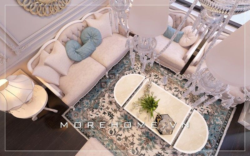 Bộ sofa phòng khách được thiết kế theo phong cách tân cổ điển giúp gia chủ khẳng định được vị thế xứng tầm.