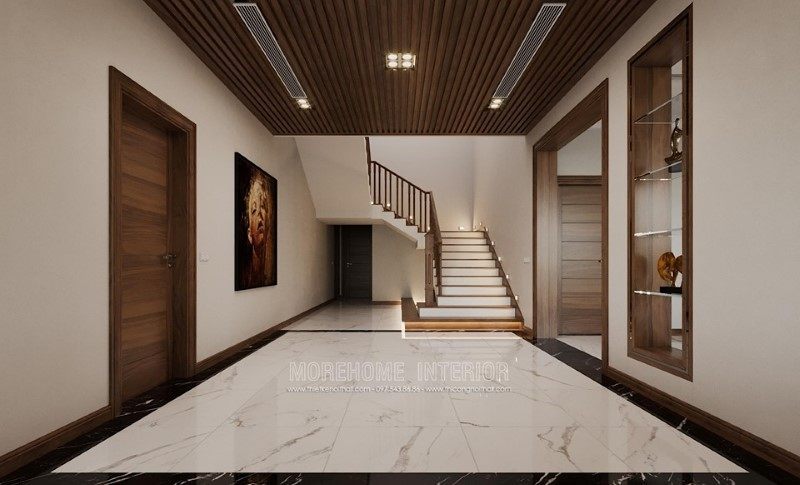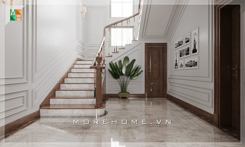 Trong không gian biệt thự, nhà phố, chung cư mẫu cầu thang gỗ song sắt mạ vàng song đôi nhau góp phần tạo nên sự cao cấp và sang trọng